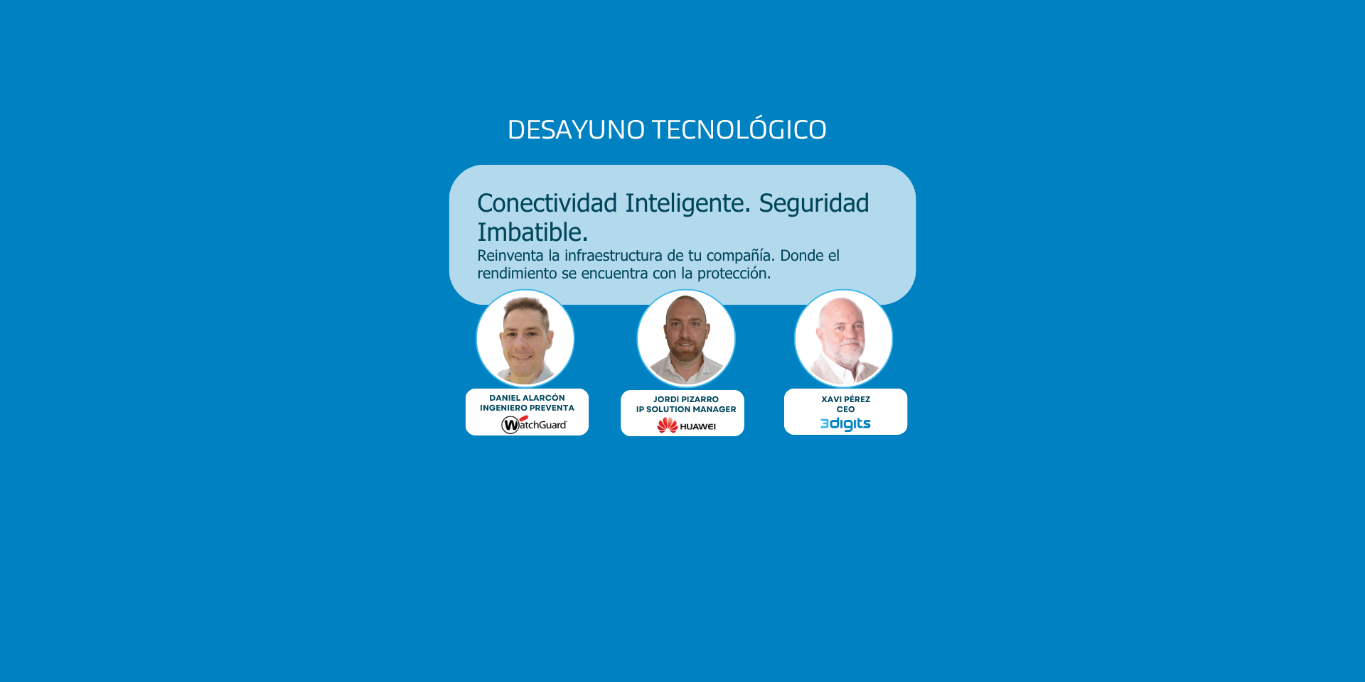Entre los ponentes destacan Xavi Pérez, CEO de 3digitsquien compartirá la experiencia de la compañía como socio tecnológico en proyectos de transformación digital; Jordi Pizarro, IP Solution Manager en Huawei, que presentará las últimas tendencias en conectividad inteligente y redes seguras; y Daniel Alarcón, Ingeniero Preventa en WatchGuard, quien abordará las claves para una ciberseguridad robusta y adaptada a los desafíos actuales.