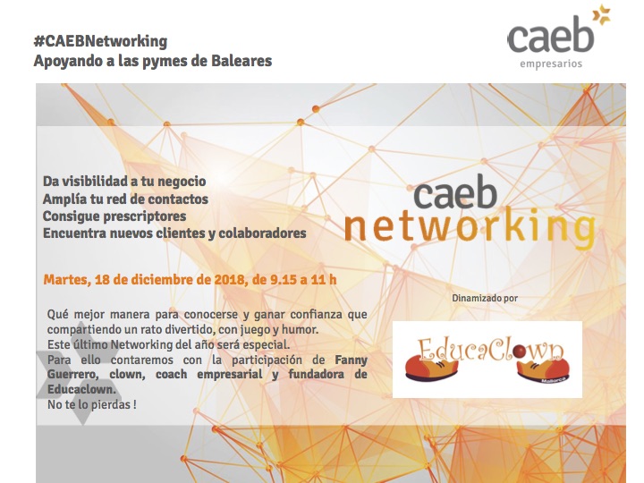 El 18 de diciembre de 09:15 a 11:00 CAEB organiza su networking, que es el espacio perfecto para promocionar nuestros productos y contactar con nuevos colaboradores y clientes. Es exclusivo para las asociaciones que pertenecemos a esta confederación, por lo que os animamos a consultar el programa y a inscribiros en este formulario, ya que las plazas ¡son limitadas!